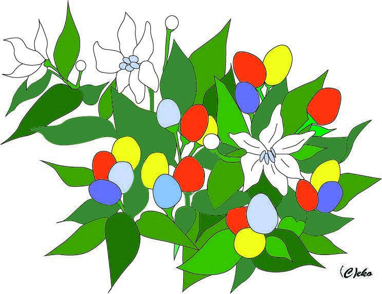 認知症のためのぬりえ「五色唐辛子」
