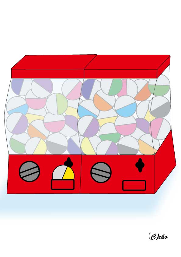 ガチャガチャ 認知証のためのぬりえ「ガチャガチャ カプセルトイ」