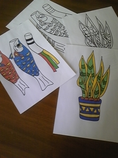 一心不乱に描く天才画家のようだった。(タダの金太郎の塗り絵だったんだけど)