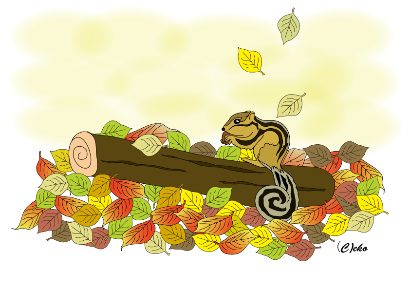 秋のぬりえ りす 認知症のためのぬりえ「秋 リスと落ち葉」