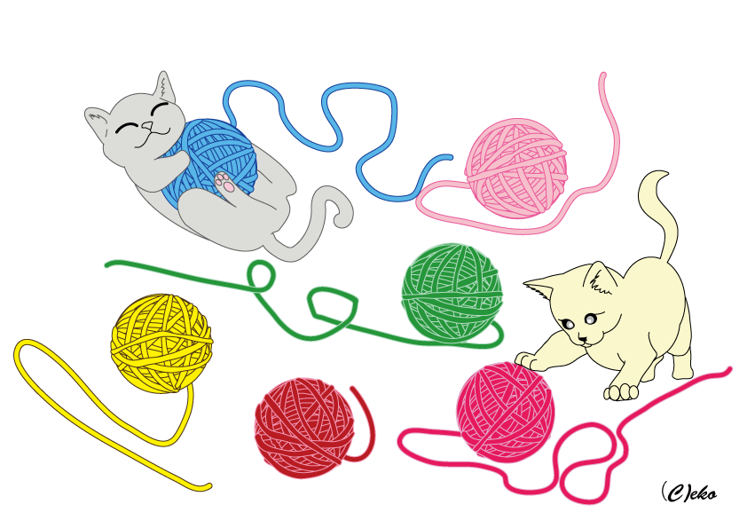 毛糸 猫 ぬりえ  認知症のためのぬりえ「毛糸と猫」